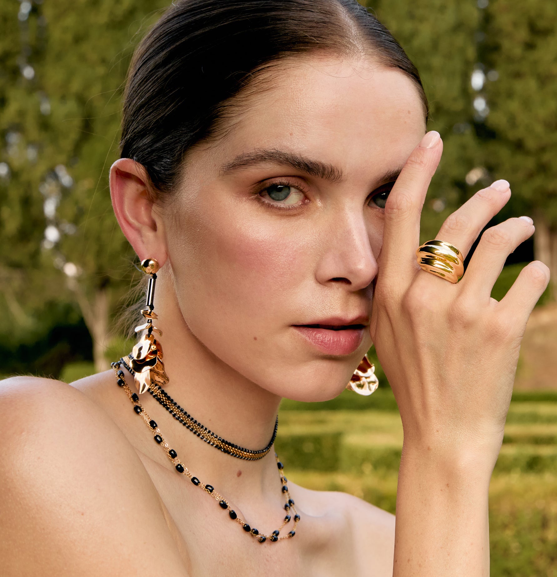 Bright accessories, timeless elegance.