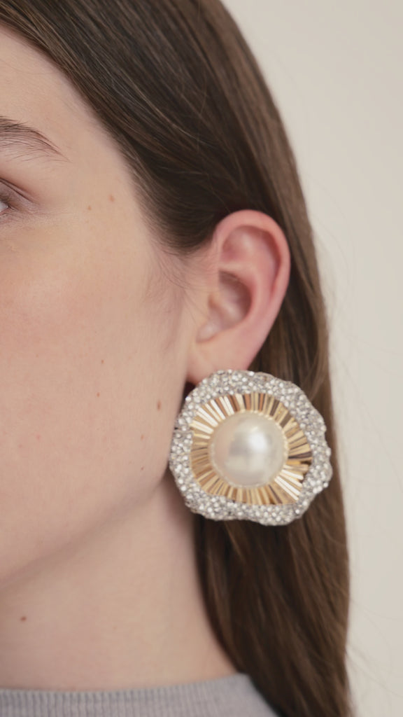 OVER EARRINGS W/PEARL & STONES GOLD/SILVER